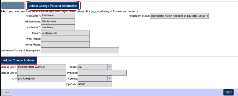 After the Legal Disclaimer, you will be taken to the Personal Information page.