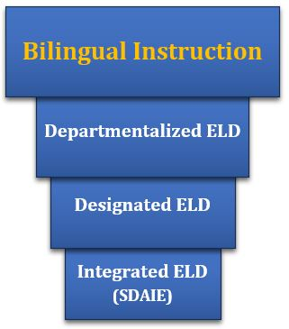 English Learner authorizations are tiered, with each subsequent authorization subsumed within the higher authorization level. Therefore, educators who hold a Bilingual Authorization are authorized to provide Integrated ELD, Designated ELD, Departmentalized ELD and Bilingual/Primary Language Instruction. Likewise, educators who hold a full English Learner Authorization (such as the ELA1 or S12), may provide Integrated ELD, Designated ELD and Departmentalized ELD.