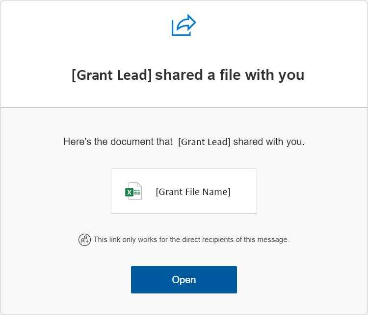 The grant lead has been given editing access to the specific spreadsheet that has been customized to the approved grant. This is a live spreadsheet through Microsoft. This is where all the data is submitted.